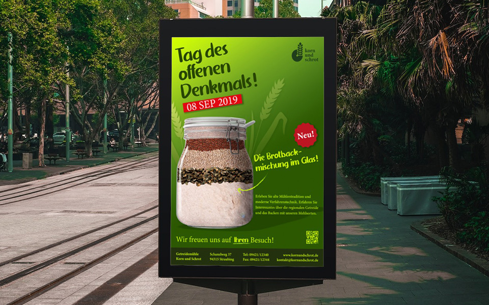 Mein Portfolio bereichert sich um ein kreatives Photoshop-Composing, bei dem ich ein leeres Weckglas mit ansprechendem Inhalt gestaltet habe. Das Projekt geht weiter, indem ich mit dem gefüllten Weckglas ein Plakat für das Unternehmen "Korn und Schrot" entworfen habe. Das Composing verbindet geschickt visuelle Ästhetik mit Werbung und hebt die Qualität der Produkte des Unternehmens hervor. Das Ziel ist es, die Authentizität und den Geschmack von "Korn und Schrot" durch ansprechende visuelle Gestaltung zu präsentieren.